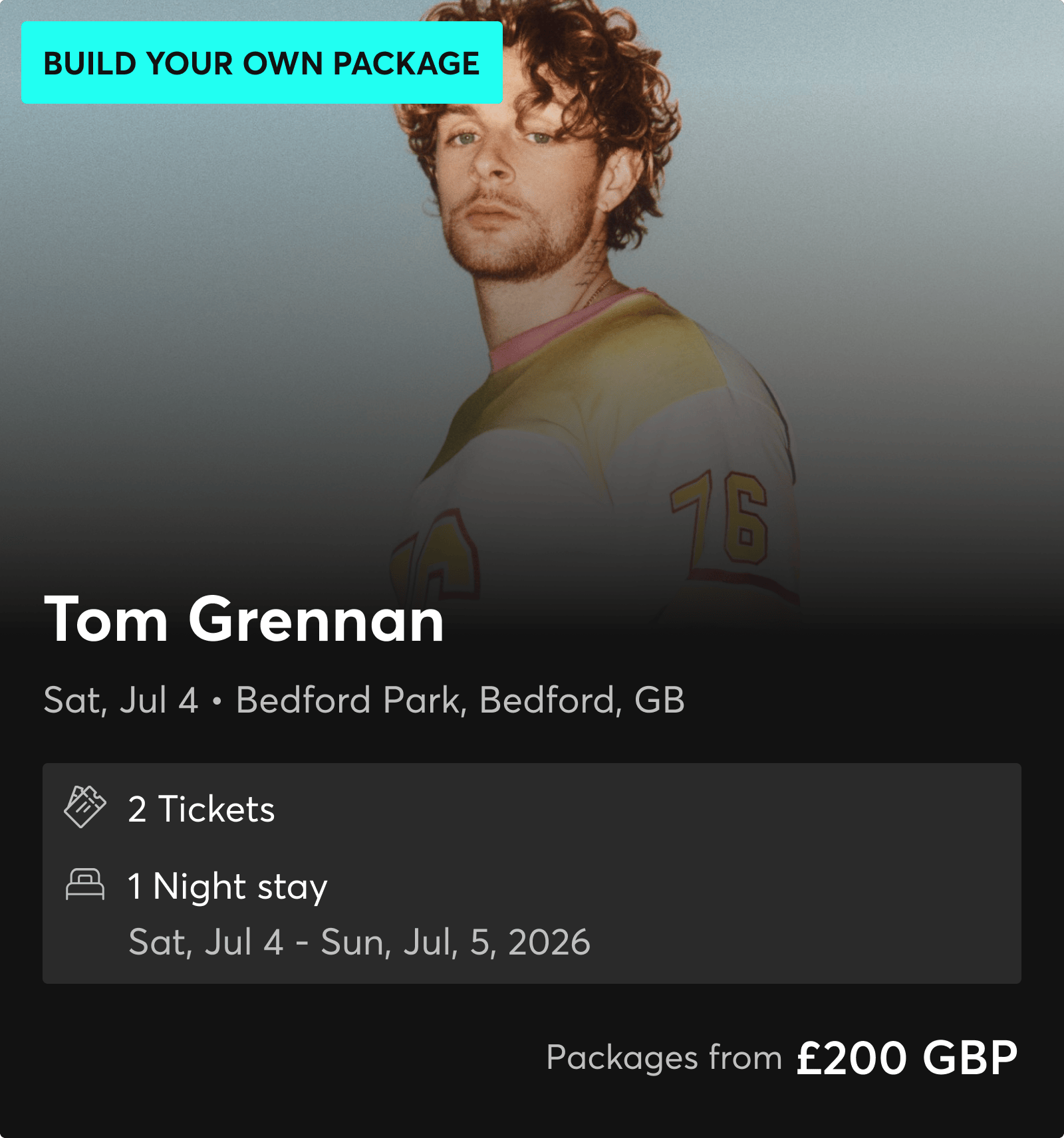 Create your perfect package with the freedom to choose your own: event, tickets, hotel, dates, room type, number of guests, etc.